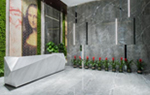 蒙娜麗莎瓷藝在行業(yè)內(nèi)首創(chuàng)“新型多材料復(fù)合壁畫”新概念,以大規(guī)格瓷板為基礎(chǔ),多種裝飾材料有機結(jié)合的方式,規(guī)避了傳統(tǒng)單一材料彩繪壁畫立體感弱,浮雕、雕塑壁畫色彩單一,單材料質(zhì)感對比不強等問題,結(jié)合多年的項目實踐,實現(xiàn)了以陶瓷、石材、馬賽克等材料為主體,復(fù)合不銹鋼浮雕、鍛銅浮雕、砂巖浮雕、石材浮雕等多種材料,形成了色彩艷麗、材質(zhì)對比豐富、立體感強等表現(xiàn)力強烈的表達手法。